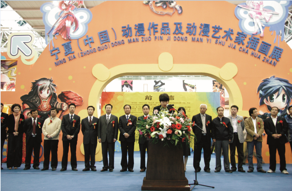 本次展會(huì)于2008年9月23日在銀川國(guó)際會(huì)展中心開(kāi)展,寧夏自治區(qū)政協(xié)副主席安純?nèi)?,自治區(qū)宣傳部副部長(zhǎng)房全中,市委常委、開(kāi)發(fā)區(qū)黨工委書(shū)記、管委會(huì)主任李澤峰,市委常委,副市長(zhǎng)潘躍龍,市委常委、宣傳部部長(zhǎng)尤艷茹,副市長(zhǎng)王久彬,開(kāi)發(fā)區(qū)管委會(huì)副主任陳偉出席了展會(huì)開(kāi)幕式。展覽時(shí)間為期15天,共吸引社會(huì)各界群眾及大中專院校相關(guān)專業(yè)學(xué)生1萬(wàn)人次到場(chǎng)參觀,對(duì)于推動(dòng)國(guó)內(nèi)動(dòng)漫插畫(huà)產(chǎn)業(yè)發(fā)展,促進(jìn)國(guó)內(nèi)外動(dòng)漫創(chuàng)作、動(dòng)漫出版以及專家與技術(shù)人才交流、借鑒,發(fā)展動(dòng)漫創(chuàng)意產(chǎn)業(yè)創(chuàng)新發(fā)展具有十分重要的意義。